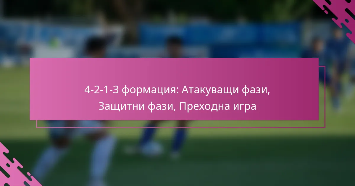 Формацията 4-2-1-3 се състои от четирима защитници, разположени в права линия в задната част, двама централни полузащитници, които предоставят подкрепа както в защита, така и в атака, един атакуващ полузащитник, който свързва играта, и трима нападатели, които създават възможности за гол. Тази структура позволява балансиран подход, позволяващ на отборите да преминават гладко между защита и атака.