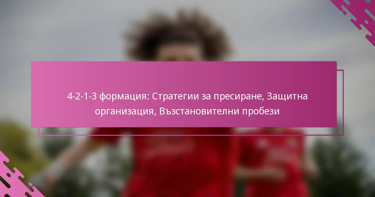 Формата 4-2-1-3 е тактическа схема във футбола, която комбинира защитна стабилност с атакуваща гъвкавост, включваща четирима защитници, двама централни полузащитници, един атакуващ полузащитник и трима нападатели. Тази формация не само позволява ефективни стратегии за пресинг за бързо възстановяване на притежанието, но също така подчертава солидна защитна организация за контриране на атаките на противниците. Чрез насърчаване на ясна комуникация и определени роли на играчите, отборите могат да подобрят представянето си както в ситуации на пресинг, така и по време на възстановителни бягания.