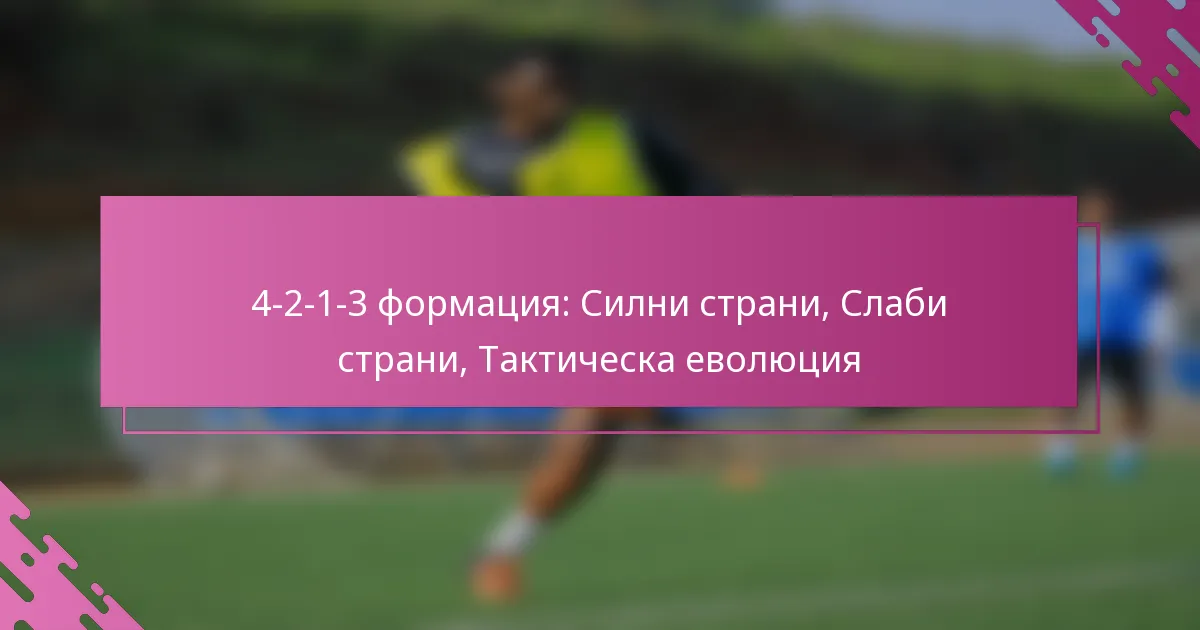 Формата 4-2-1-3 е тактическа схема, която подобрява представянето на отбора чрез подобрено задържане на топката и разнообразни атакуващи опции, като същевременно осигурява солидна защитна покритие. Въпреки това, тя също така представя слабости, като уязвимости по време на бързи преходи и предизвикателства срещу отбори, които прилагат високо натискане. С течение на времето тази формация еволюира, за да отговори на изискванията на съвременния футбол, акцентирайки на течността и адаптивността, за да постигне баланс между защита и креативност.
