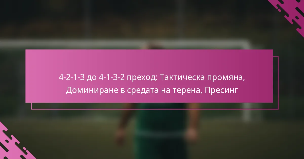 Преходът от формация 4-2-1-3 към 4-1-3-2 представлява значителна тактическа промяна, която подобрява доминацията в средата на терена и ефективността на пресинга. Чрез приемането на един дефанзивен халф, отборите могат да създадат по-компактна структура в средата на терена, което позволява подобрено контролиране на притежанието на топката и стратегически пресинг. Успешното прилагане на този преход изисква внимателни корекции в ролите на играчите и силна комуникация на терена.