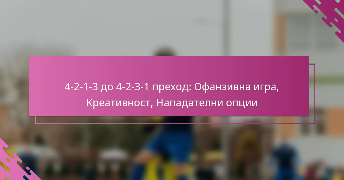 Преходът от формация 4-2-1-3 към 4-2-3-1 включва тактически корекции, които подобряват атакуващата игра и креативността. Тази промяна не само предоставя повече опции за атака, но и поддържа солидно присъствие в средата на терена, позволявайки на отборите по-добре да експлоатират пространствата и да създават възможности за гол. Подчертавайки позиционирането и движението на играчите, този преход насърчава иновативното мислене и гъвкавостта, които са от съществено значение за ефективните атакуващи стратегии.